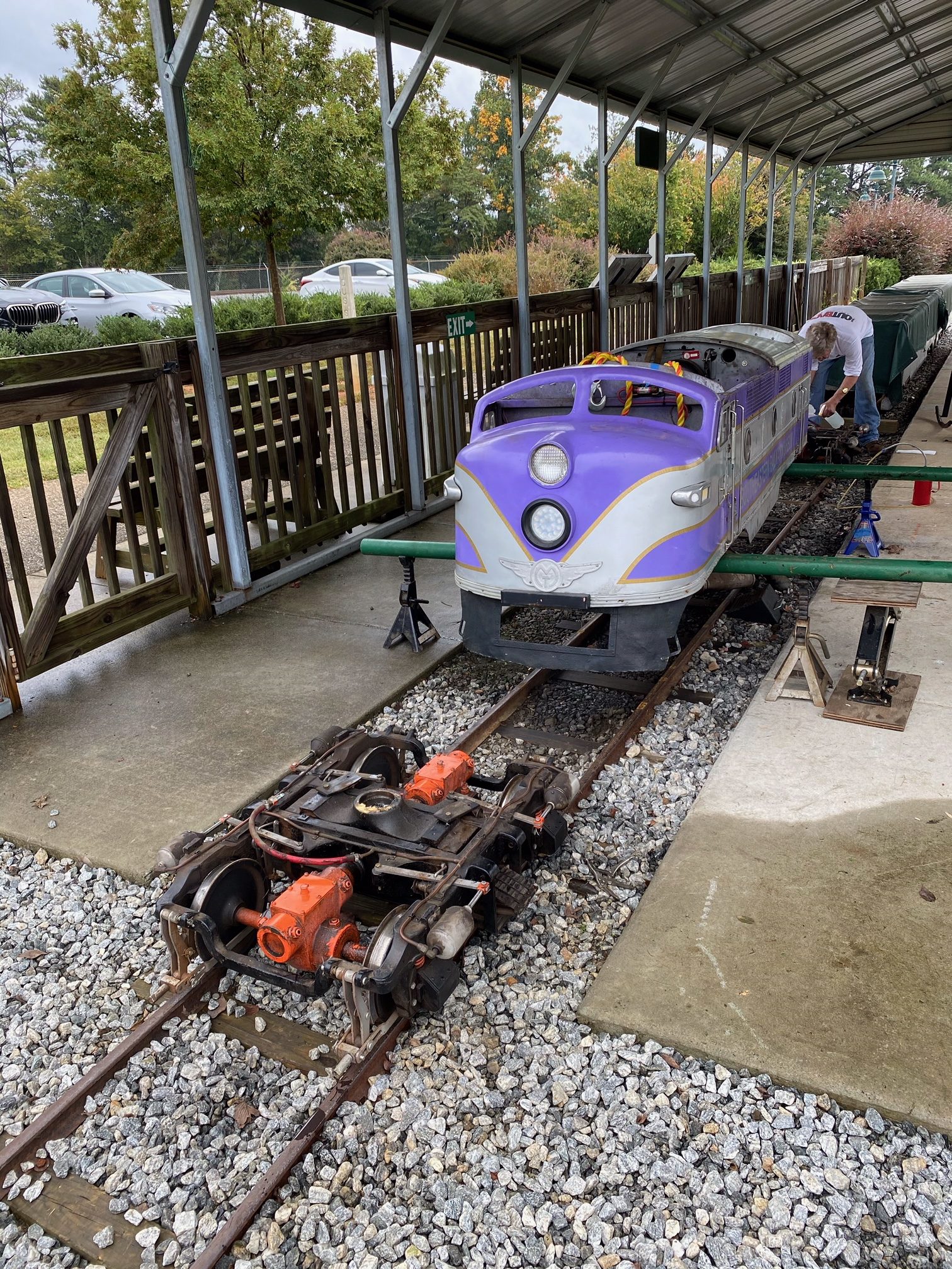 We had an exciting work session. While the heart/engine (affectionately dubbed Christine) is well on its way to reassembly and recovery, we took the opportunity to do a locomotive tire rotation, essentially.