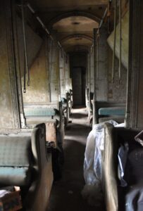 The 1929 Pullman sleeper was built for Southern’s Crescent Limited. Originally a 10-section (upper and lower berths) and two drawing rooms, it was modified six years later into its current configuration of 10 sections, two bedrooms, and one drawing room. This is a heavyweight car that was donated in 1965. The car can be a magnificent restoration project. Its interior has huge potential to represent the grandeur of elegance on the rails.