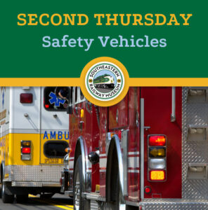 The sirens are calling to alert you that this month’s Second Thursday toddler program is all about safety vehicles! Admission to Second Thursday includes a safety vehicle themed story time, arts and craft, game time, the opportunity to see police cars and fire trucks up close, and a ride on the historic park train!