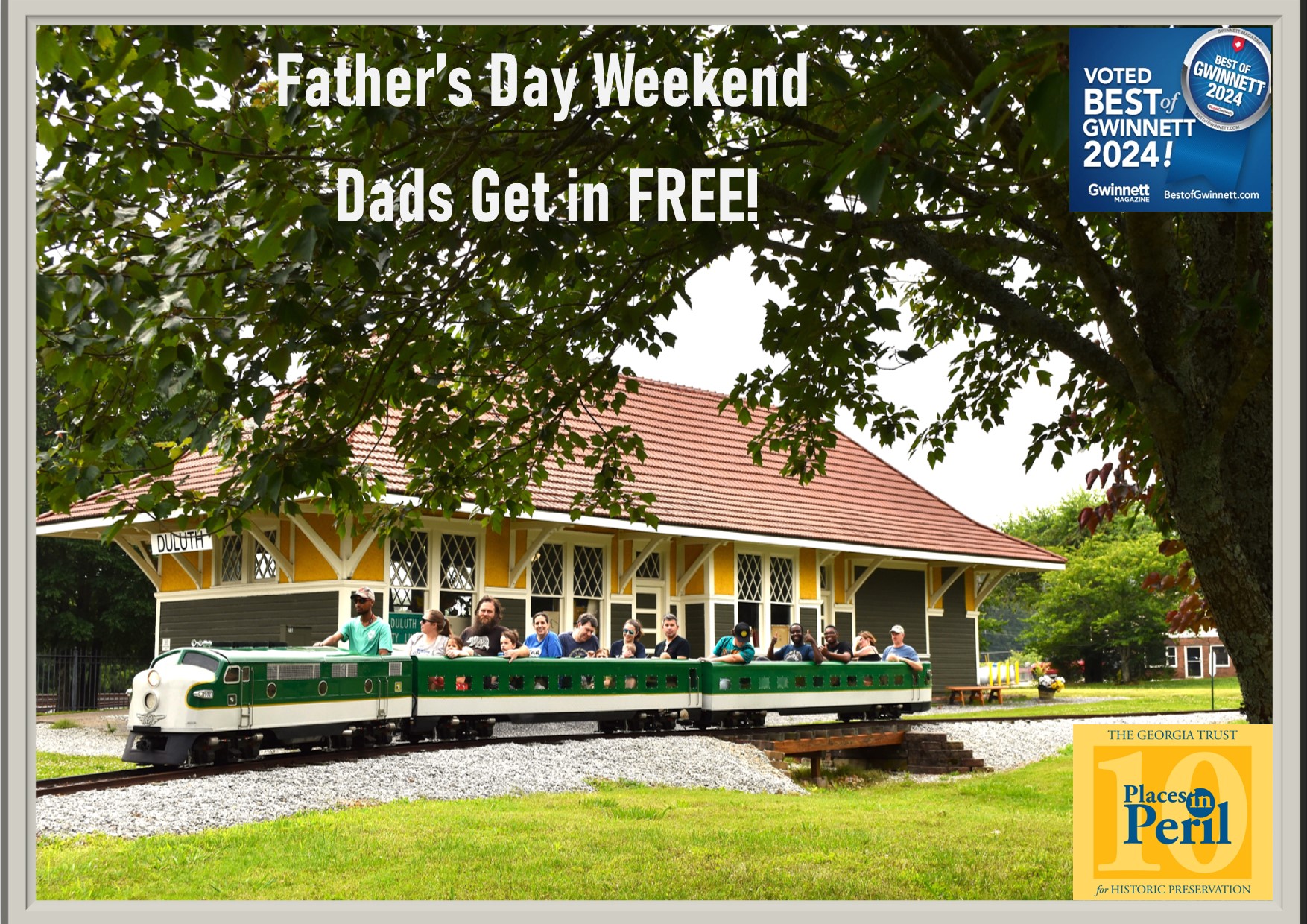 Southeastern Railway Museum 3595 Buford Hwy, Duluth, GA, United StatesThis weekend, dad's get in free with family. Put a smile on good old pop by putting him on a train. Rides, trains, exhibits, picnic tables, nice weather, and pop - at the Museum! More [...]