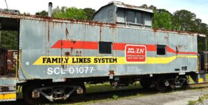 This steel class M6 caboose was rebuilt in 1970 and donated in 1997. The main components of the Family Lines (a marketing stance) were the Louisville & Nashville, the Clinchfield, and the Seaboard Coastline. Basically intact, the car can usually be seen on the end of a short freight train on our Track 14 and can be open for touring on occasion.